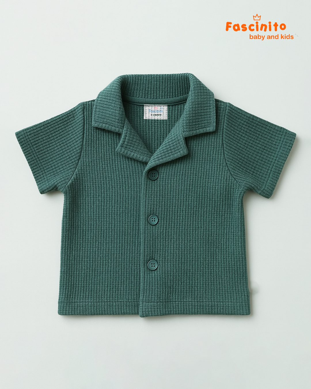 Keep your little one cozy and stylish with this teal ribbed button-up shirt from Fascinito. Crafted from breathable, stretchable rib-knit fabric, this half sleeve shirt features a smart collar and front button closure, making it perfect for both casual and semi-formal occasions. The rich texture and relaxed fit ensure maximum comfort throughout the day.